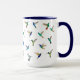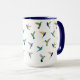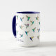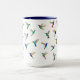 Taza personalizada única para amantes de los colibríes que presenta varias especies de colibríes, como colibríes garganta de fuego, colibrí zafiro de cola dorada y colibrí zafiro, colibríes orejiazul mexicano, colibrí coronado y colibrí estrella rutilante y un colibrí de Anna. Imágenes tomadas de pinturas acuarelas originales de Christiane Dobbins.