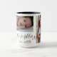 En esta elegante taza blanca hay una letra en forma de monograma negro en la esquina y 3 fotos con el texto en negro en el medio con el nombre y la fecha de la familia, donde se puede personalizar a su gusto con sus propias fotos y el nombre de la familia.