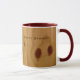 Una elegante taza con la imagen de granos de madera, personalizada con su nombre y sus iniciales... para concordar con la decoración de una cocina rústica.