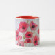 Las damas de color rojo Poppies llaman azul Mug. Un diseño floral de acuarela gloriosa. Diseñado a partir de mis pinturas acuáticas originales, que pinté desde mi propio jardín de flores.