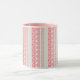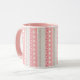 Una taza de café con un patrón geométrico original de Mango Moon Studio de triángulos y chevrones en colores de rosa y bronceado en el desierto suroeste.