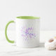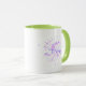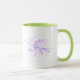 This colorful abstract neon splash coffee mug features a vibrant modern art design on a dark background.