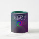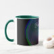 This modern colorful coffee mug features a geometric fused center circular theme. Personalize this product to your preference with custom text. Additional mug colors are available.