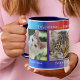 Imagen personalizada con fotos de tus favoritos (gatos) enmarcadas por un colorido diseño a cuadros. Magnífico como regalo para un amante del gato o un amante del perro. ¡Por supuesto también puedes añadir tus fotos de viajes u otras imágenes favoritas y usar esta taza para un propósito diferente!