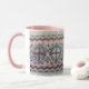 Mi amigo Ash lo compró en la tienda de segunda mano y me lo trajo. "¡Te parecerá genial!" Siempre me traía cosas que había encontrado en tiendas de segunda mano y mercados de pulgas... cosas que no quería y para las que no tenía utilidad. Cosas como este suéter. Decidí tirarlo a la basura en el momento en que le dieron la espalda, pero sólo para mantener la paz y hacer que dejara de hablar, lo intenté. Tenía razón, se veía genial. Me veía muy bien. Me quedaba perfectamente, los colores complementaban mi propia complejidad, las mangas eran (¡mirabile dictu!) la longitud correcta. Entró en mi oficina, y ha sido parte de mi armario desde entonces. A veces un amigo loco te conoce mejor que tú mismo. Pronto tendré que retirarlo —ahora es una pesadilla, y los agujeros se abren más rápido de lo que puedo repararlos. Así que hice lo que hago con todas las cosas que amo y que no puedo conservar para siempre: tomé mi cámara e hice un registro para mi álbum de fotos. Y ahora, una taza también.