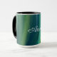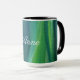 Taza verde hermosa con su nombre en él. Fácil poner su nombre en él con color por su gusto y fuentes que usted elige.