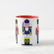 Taza de café combinada con la franja roja y cinco soldados adorables del cascanueces.