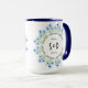 Una taza combinada con imágenes de hermosas flores de crocus azules. El fondo, la imagen y el texto se pueden personalizar. Obra de arte original de W.B.
