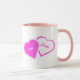 Taza del Día de San Valentín con hermosas imágenes de corazones rosados y blancos. Las imágenes, el fondo y el texto se pueden personalizar. Arte original de W.B.