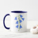 Una taza con una imagen encantadora de flores de campanilla. Las imágenes, el fondo y el texto se pueden personalizar. Arte original de W.B.