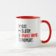 Come. Duerme. Haz vino. Repite. Este accesorio para la elaboración de vino sería un gran regalo para el productor de vino para todo aquel que sea amante del vino y amante de hacer su propio vino. Ideal para una vinicultora a la que le encanta la elaboración casera de vino de uvas como hobby. ¿Te encanta hacer tu propio vino en casa? ¿Te gusta usar botiquines para hacer vino en casa? ¡Entonces este diseño es para ti!