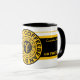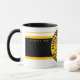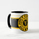 Mug blanco y negro de 11oz. con un círculo sobre un rectángulo negro y dorado con "EL JUICIO COFFEEBEAN" dentro del círculo con "Columbia, MO GO TIGERS!!!" también con el logo Y-NOT-ME. Este diseño es un grito al gran estado de Misuri, el estado SHOW-ME. Además, a una ciudad creciente y progresista, Columbia, Missouri.