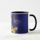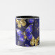 Composición de lujosas mariposas de zafiro y joyas de oro sobre fondo de textura azul.