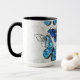 Composición vertical de mariposas morfo realistas, azules y blancas sobre fondo texturado gris. Mariposa azul morfo.