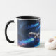 Taza con escena de naves espaciales entrando a agujero interdimensional