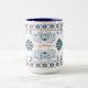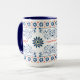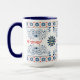 Agrega elegancia audaz con este patrón floral tradicional folklórico que presenta scrolls ornamentales azules, acentos rojos y un mandala detallado sobre un rico fondo negro. Perfecto para decoración, tela, papelería, ropa y productos de regalo elegantes.