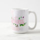 Taza con texto de felicitaciones florales rosadas
