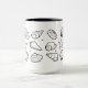 Una taza con un diseño de joabt. El diseño muestra conchas de conchas dispuestas en un patrón.
