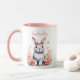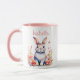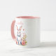 Un lindo conejo conejo sentado en un parche de flores y follaje rosa color agua de bonito.