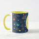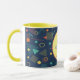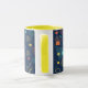 Echa un vistazo al patrón geométrico de conejo cutáneo con colores verde amarillo-naranja con cuadrados, rectángulos y formas de círculos, puedes cambiar el color de fondo para tomar una bebida divertida.