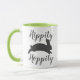La taza de primavera con la frase "hastipity hoppity" y la silueta de conejito.