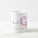Dé la taza exhausta del nombre y del significado de G de la letra. El capital bonito G del corazón y de la flor doodled el diseño tipográfico que ofrecía corazones y las flores y las palabras Gretchen poca perla. Justo, agraciado y exquisito. Arte y diseño únicos del © de Sarah Trett. www.sarahtrett.com para www.mylittleeden.com en zazzle
