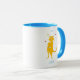 Añade un nombre para crear un divertido regalo personalizado para los malabaristas o para alguien que está aprendiendo a hacer malabarismos. Esta taza de café presenta un ilustracion personalizado lindo de un gato naranja malabarillado bolas, y está listo para ser personalizado con un nombre u otro mensaje en letras azules.