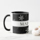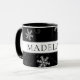 Se descoloró el negro con suavidad los remolinos de plata y los copos de nieve blancos con una banda de centro confinada blanca donde sus ajustes del nombre o del monograma.