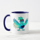 Taza Coq cartoon bleu joyeux avec ailes déployées.