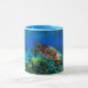Nadando con las exóticas tortugas tropicales. Vibrante foto del submarinismo justo debajo de la superficie de las azules aguas tropicales. Viendo a las tortugas marinas nadar alrededor de la barrera de coral con pequeños peces tropicales coloridos cerca. Las tortugas marinas pueden vivir hasta 100 años, aguantar la respiración bajo el agua hasta 5 horas al mismo tiempo, comer medusas y pueden pesar hasta 2.000 litros.