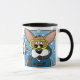 Diversión y dibujo animado brillantemente coloreado del Corgi Galés del Pembroke del buceo con escafandra de la raza del perro, regulador en boca, y una natación de los bannerfish del longfin por curiosamente. ¡El fondo tiene porciones de burbujas! Taza única del corgi para los buceadores y los amantes del perro.