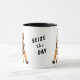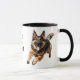 Un hermoso perro pastor alemán corre hacia ti a ambos lados de esta taza. El texto en negro en el medio dice "CONSEGUIR EL DÍA", pero puedes fácilmente cambiarlo a otra cosa, si quieres.