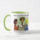 Una taza con un personalizado gracioso sobre lo que se puede oír en la escuela secundaria. La imagen, el fondo y el texto se pueden personalizar. Obra de arte original de DBcartoons.