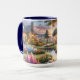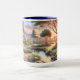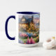 This enchanting artwork captures a dreamy cottage garden bathed in the golden glow of sunset, where colorful blooms and tall foxgloves line a gentle stream that winds past cozy houses and old wooden bridges. A large tree anchors the scene, its sprawling branches casting dappled shadows over the vibrant flowerbeds bursting with lupines, peonies, and wildflowers. Warm lights twinkle along the path, creating a soft, magical ambiance that feels both nostalgic and serene. The pastel tones, painterly brushstrokes, and whimsical composition give the piece a timeless, cottagecore charm—perfect for evoking the peace and poetry of slow-living landscapes. AI generated artwork.