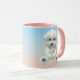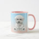 Taza Cozy Plush Moment: Smiling Bichon Hugging Mini Pup