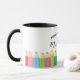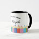 Un regalo maravilloso para tu profesor de primaria favorito. Los lápices de colores bordean la taza de café junto con el nombre personalizado de los profesores en letra de escritura moderna.