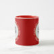 Crea una taza de café roja personalizado con tus fotos. Modifique esta plantilla de bloqueo de dos imágenes y añada un toque personal. Una idea de regalo que complacerá a tu persona especial. Imágenes con corte circular, texto personalizado y nombre