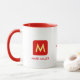 Añade tu propio nombre, marca o cualquier otra palabra especial a las plantillas para crear una taza monográfica exclusiva, con tu letra inicial en un cuadrado rojo. Una forma creativa de regalar a alguien