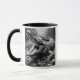 Un immense crocodile, aux écailles détaillées, ouvre grand la gueule, montrant ses dents acérées. Il est allongé près d’une rivière calme, entouré de nénuphars et de papillons volant autour de lui. Son regard perçant et son corps puissant créent une atmosphère à la fois fascinante et effrayante. L’image en noir et blanc met en valeur chaque texture et détail, donnant un effet dramatique et réaliste. Un mélange entre la nature et la force brute de cet animal redoutable.