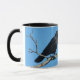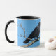 Un cuervo en una rama en un buen día con un cielo azul detrás de ella.