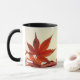 Taza Cruz cristiana gris, hojas rojas otoñales