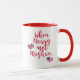 NewParkLane - Boda real Mug, con la divertida cita 'Cuando Harry conoció a Meghan', en tipografía de escritura roja, y las banderas del Reino Unido y Estados Unidos en formas cardíacas. Proteja esta colección para ver los elementos coincidentes. ¿Tienes deseos de diseño personal específicos? ¡Siéntete libre de contactarme!