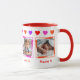 Taza Cuatro fotos personalizadas, corazones coloridos,