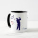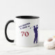 Esta linda taza de cumpleaños muestra a un golfista de silueta azul marino tomando un columpio completo. El texto en azul y rojo junto a la imagen dice "Todavía CONDUCIRLA DURO a los 70". ¡Seguro que es el comienzo de una conversación en la oficina para cualquier hombre que ame el golf! La imagen está impresa en ambos lados, con su nombre u otro texto personalizado entre ellos.