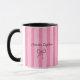 Celebrate the sweetest surprise with this adorable custom auntie pregnancy announcement mug. Featuring soft pink stripes and an elegant bow design, this personalized ceramic mug is the perfect way to reveal a pregnancy to a special aunt or aunt-to-be. Customize the name to create a meaningful keepsake she’ll treasure forever.