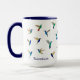 Unique custom mug for hummingbird lovers featuring several species of hummingbirds, such as a Broad-billed Hummingbird, a Fiery-throated Hummingbird, Golden-tailed Sapphire and Sapphire-bellied Hummingbirds, Mexican Violetear Hummingbirds, Coronet and Glittering Starfrontlet Hummingbirds. Images taken from original watercolor paintings by Christiane Dobbins.