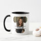 This mug has a minimalist design featuring a custom image shaped into a fat alphabet letter, T, with a space in the centre to add a person's name. It is a great way to create a personalised mug for a special person.