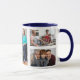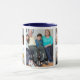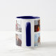A two-tone blue and white ceramic Christmas mug customized with five family photos, creating a personalized holiday keepsake.