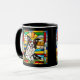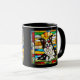 A cute funny dog coffee mug featuring a Border Collie wearing sunglasses portrayed in stained glass.