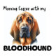 El café matutino de Cute Brown Mug, presenta una encantadora taza con un pardo claro Bloodhound con ojos conmovedores y orejas droopas. El texto de la taza dice "Café matutino con mi sangre", este encantador diseño captura perfectamente la acogedora sensación de empezar el día con tu fiel compañera canina. ¡Disfruta de tus aventuras de compras! Artista Tanya Arseneau Nanniesfineart